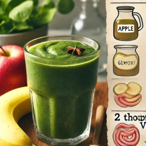 사과와 바나나는 장 운동을 활발하게 해주고, 치커리는 장내 유익균을 증가시켜 독소 배출을 돕습니다. 식초는 소화를 원활하게 하고, 몸을 알칼리화하는 효과가 있습니다.
